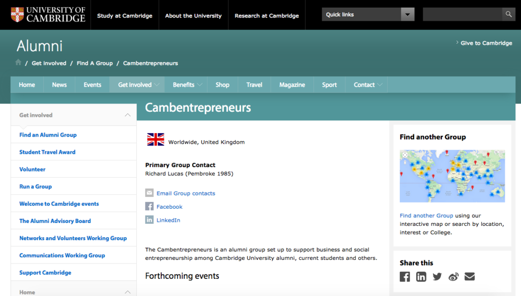 This is a case by case decision based on the current situation. It is worth making contact with these organisations to see what they think and whether they want to help. At Cambridge University - the alumni office supported the formation of an officially sanctioned group Camentrepreneurs.